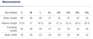 | Shirt Size | US Xtra Small, US Small, US Medium, US Large, US XLarge, US 2XL, US 3XL |